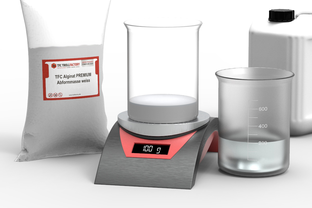 Das Alginat Abformset beinhaltet alles, damit Sie gleich nach dem Auspacken beginnen können.