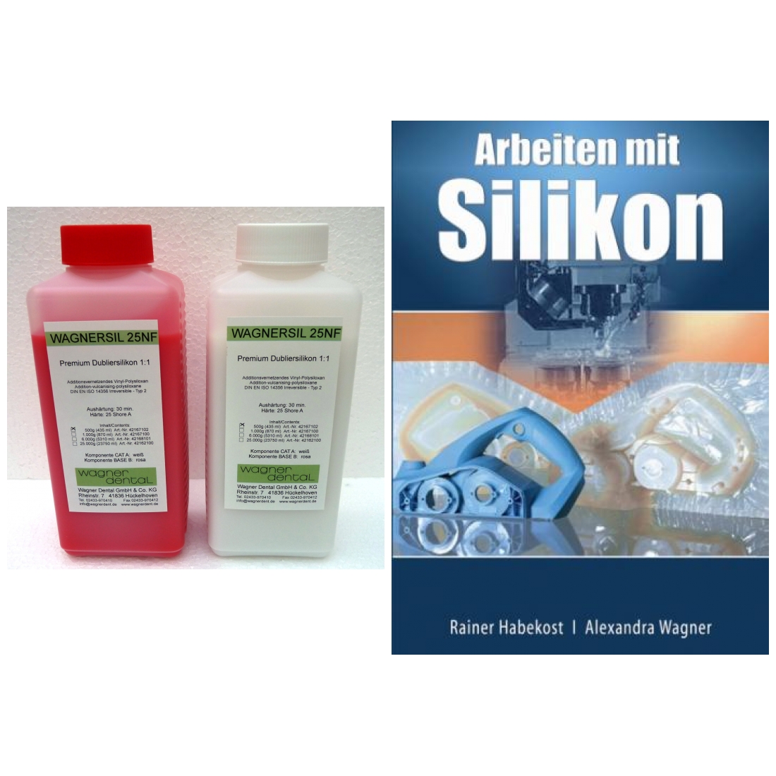 Produktinformationen "Wagnersil Premium 25 NF rosa Shore 25 EFZ 30 min 1:1 im Set mit Buch Arbeiten Silikon von Rainer Habekost und Alexandra Wagner - Größe: 1kg (2x500g)"