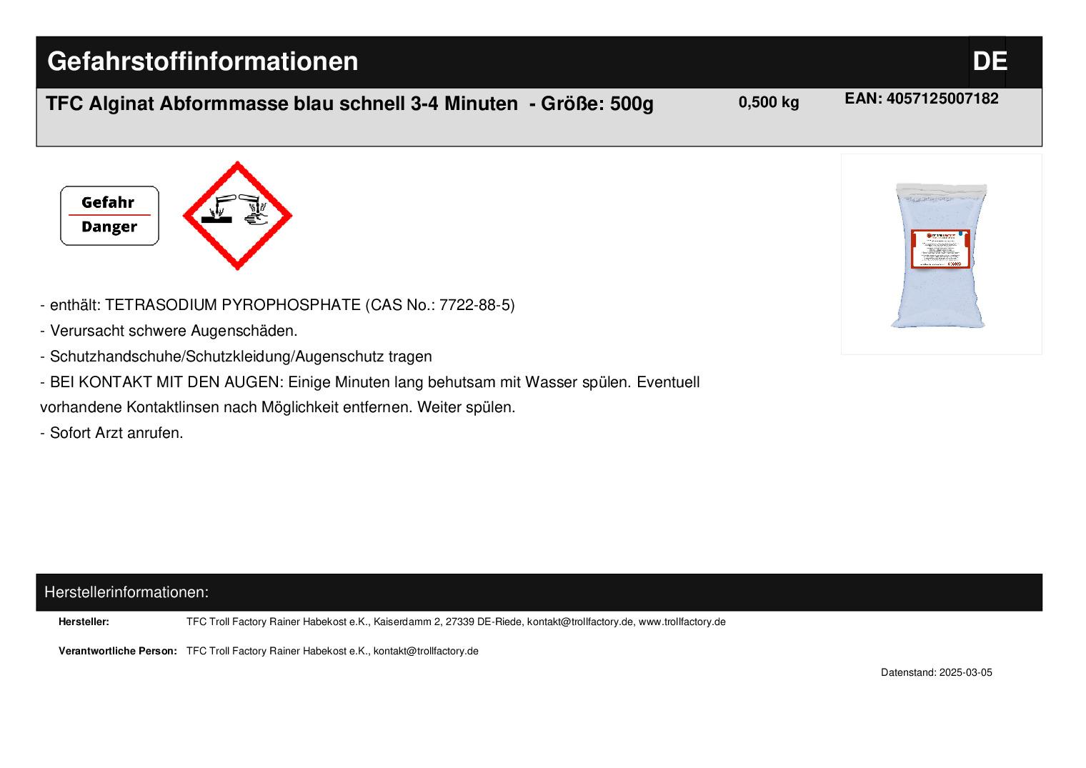 Produktinformationen "TFC Alginat Abformmasse blau schnell 3-4 Minuten - Größe: 500g"