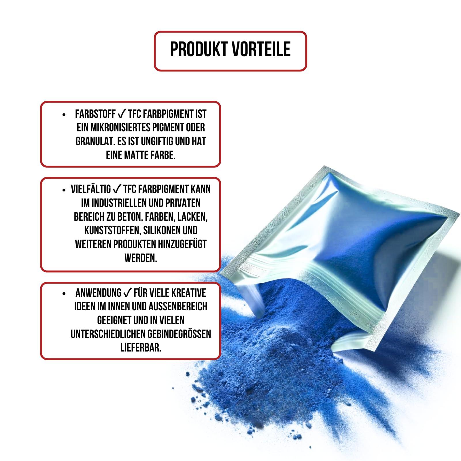 Ideal für die Einfärbung von Reliefgießmassen, Beton, Epoxidharz und mehr. Setzen Sie kreative Akzente in Ihrem Zuhause und Garten mit den TFC Farbpigmenten Oxid. Die Lagerung in einem geschlossenen Behälter an einem trockenen, kühlen Ort sichert die Qualität und Intensität des Pigments für jede Anwendung.