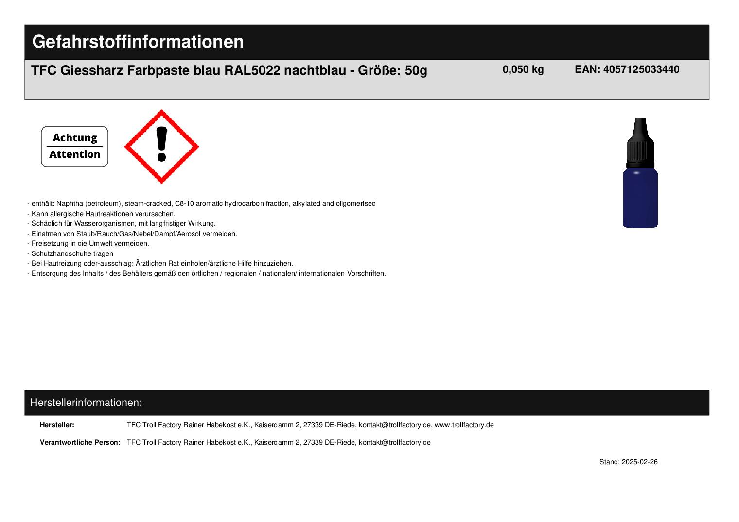 - TFC Giessharz Farbpasten sind frei von Lösemitteln, Weichmachern, Phthalaten und VOC.