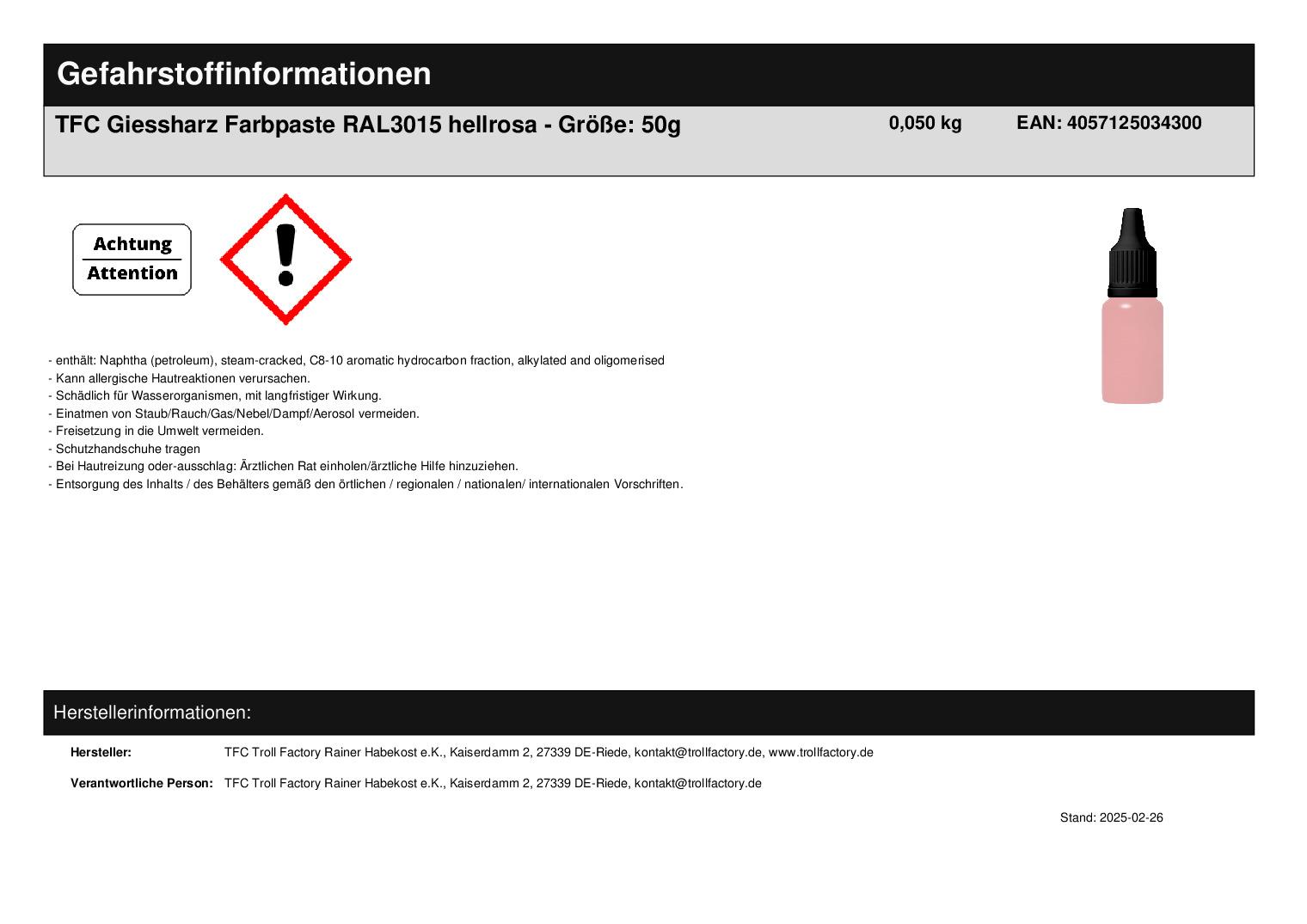 - TFC Giessharz Farbpasten sind frei von Lösemitteln, Weichmachern, Phthalaten und VOC.