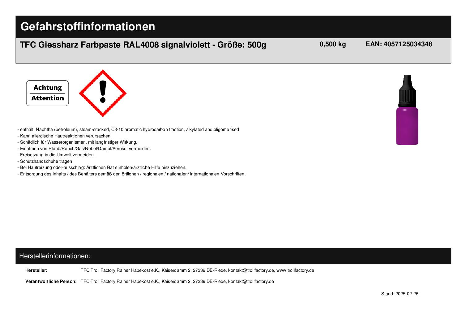 Produktinformationen "TFC Giessharz Farbpaste RAL4008 signalviolett - Größe: 500g"