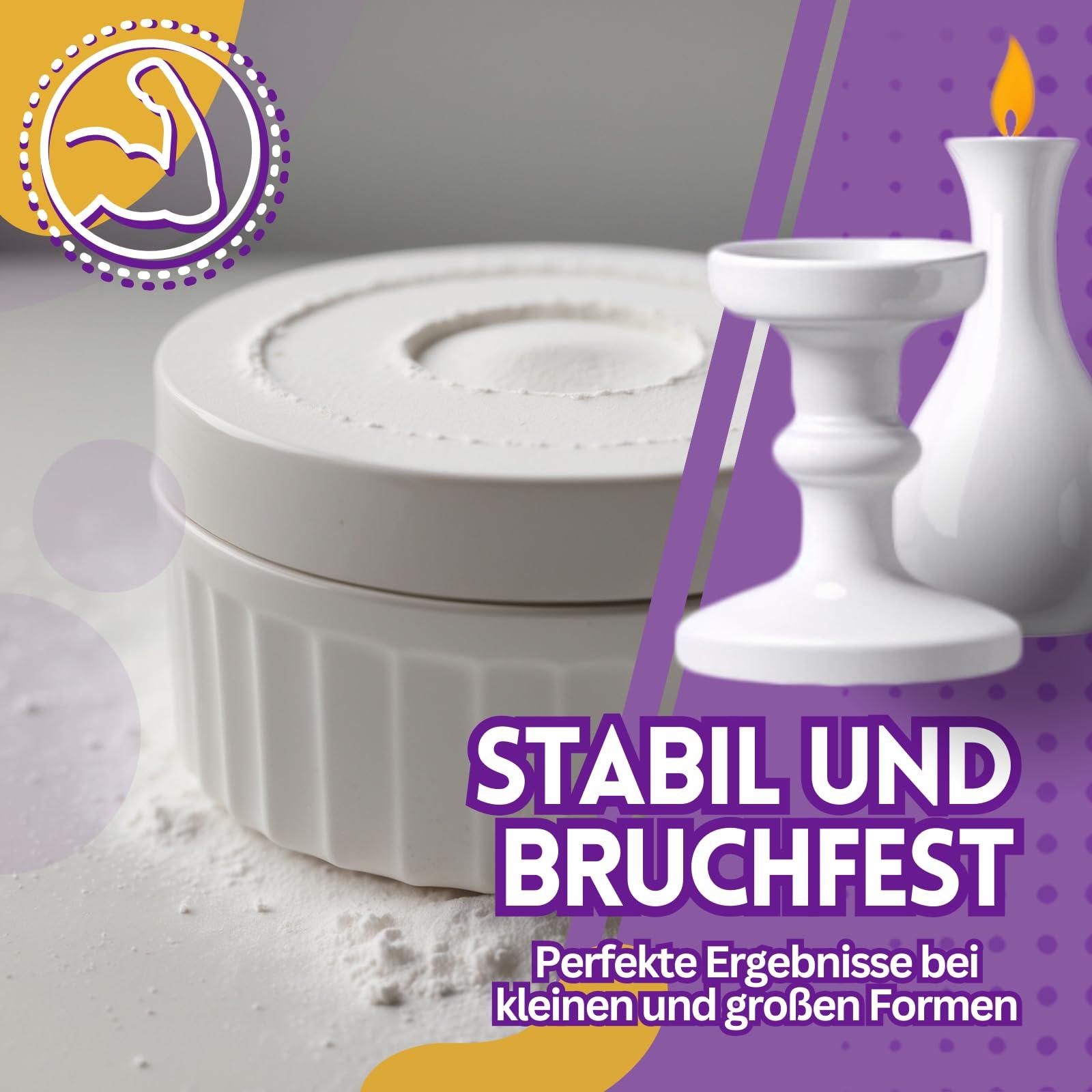 Vielseitig einsetzbar: Ob für filigrane Skulpturen, Formenbau oder technische Anwendungen – diese Gießmasse erfüllt Ihre kreativen Ansprüche. Die weiße Farbe lässt sich perfekt bemalen und individuell gestalten.