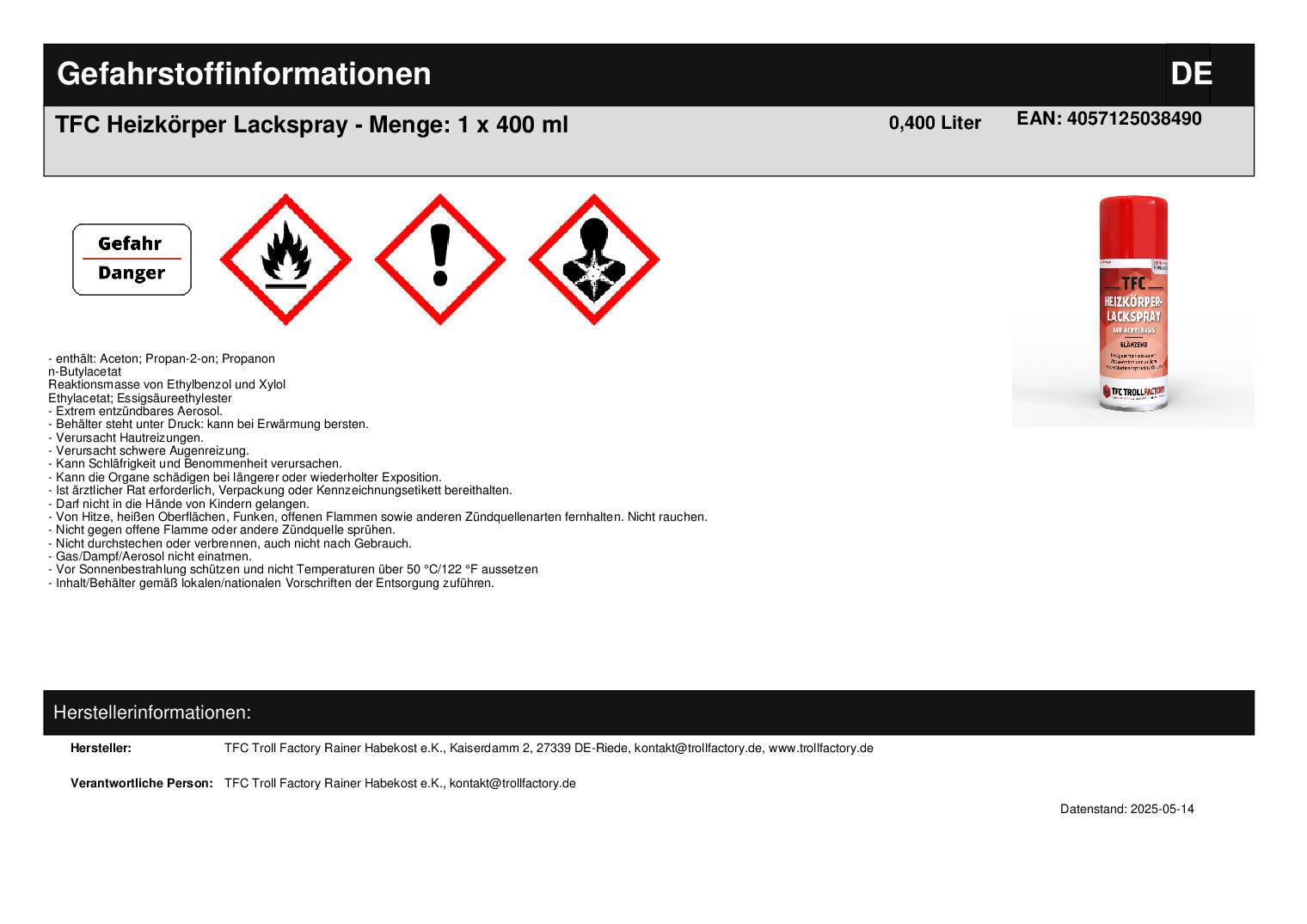 Produktinformationen "TFC Heizkörper Lackspray - Menge: 1 x 400 ml"