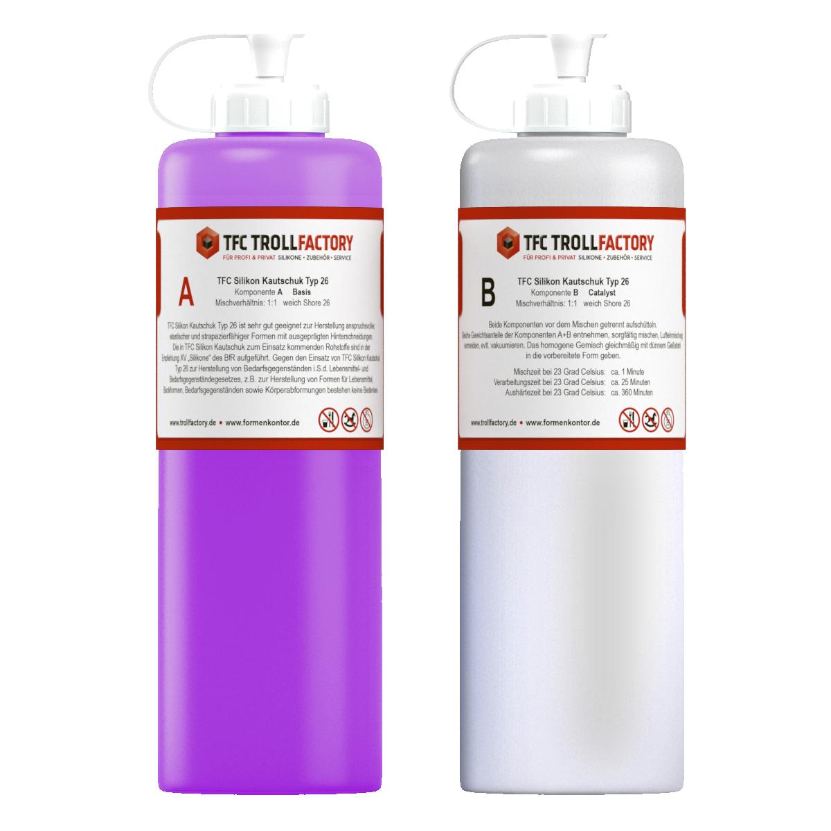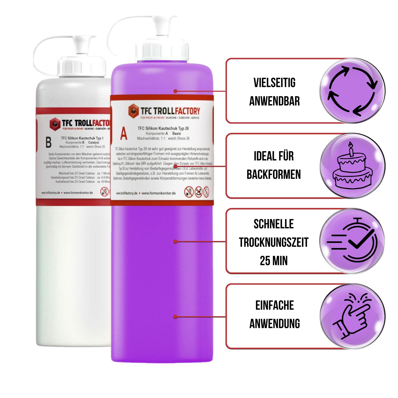Produktinformationen "TFC Silikon Kautschuk Typ 26 Lebensmittel flieder weich Shore 1:1 DIY Backform - Größe: 2kg (2x1kg)"