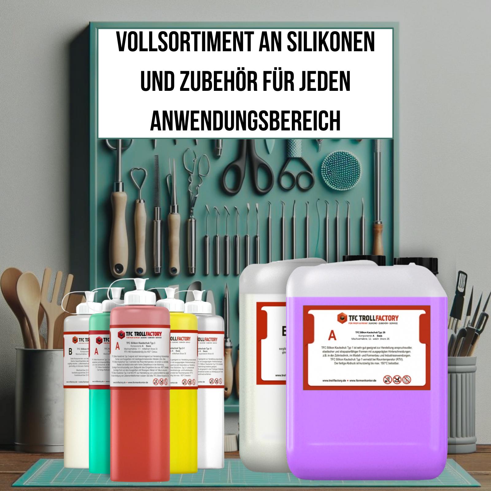 TFC Silikon Kautschuk Typ 26 ist sehr gut geeignet zur Herstellung anspruchsvoller, elastischer und strapazierfähiger Formen mit ausgeprägten Hinterschneidungen.