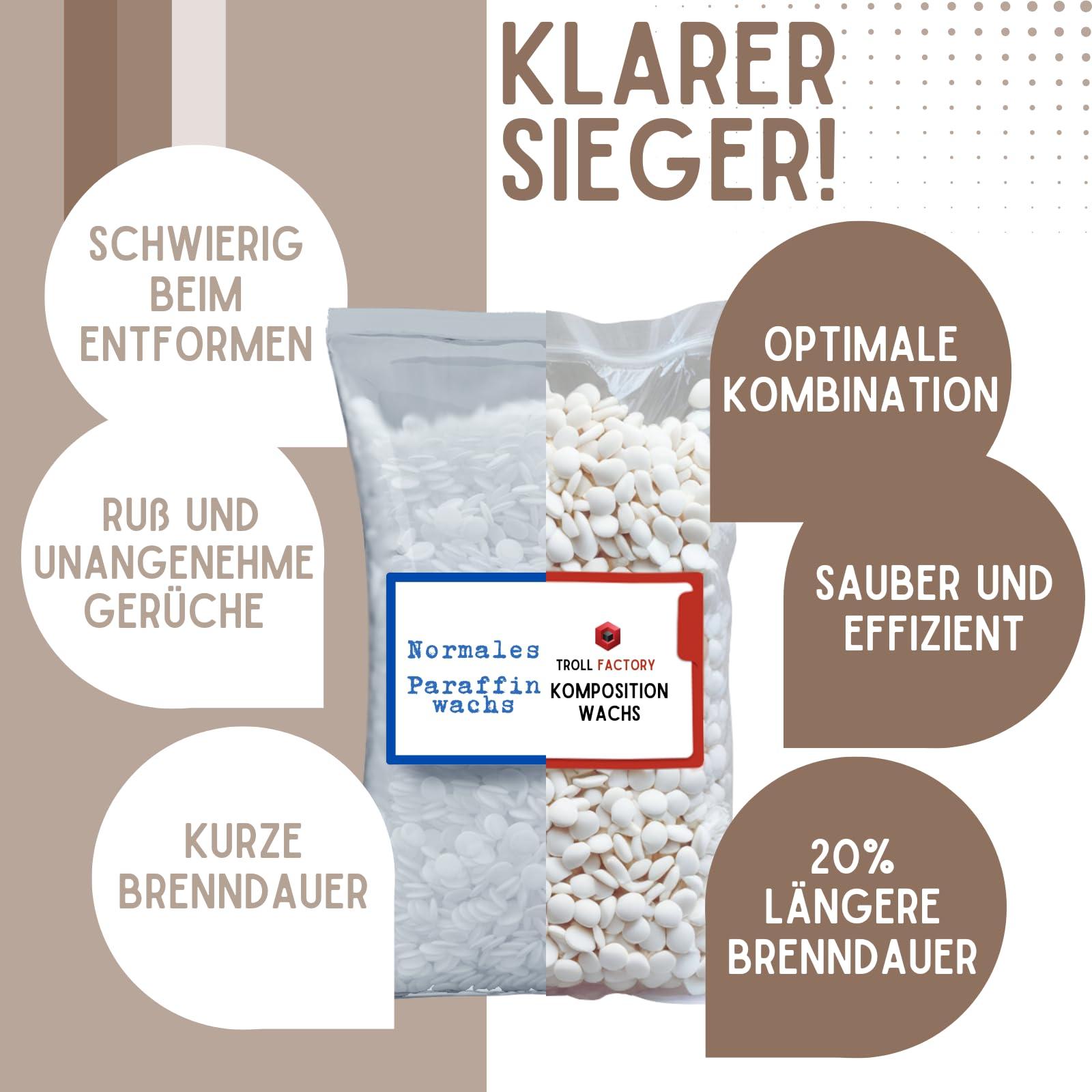 - 🌱 Überlegen gegenüber Paraffin: TFC Kompositionswachs, ein Premium-Wahl für umweltbewusste Kerzenmacher, bietet eine sauberere Brennung und langlebige Kerzen als herkömmliches Paraffin.
